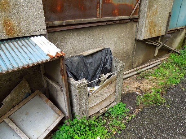 手前の板は少し欠けちゃっているし、上のフタは完全になくなっているけど、これは紛れもない昭和のゴミ箱!