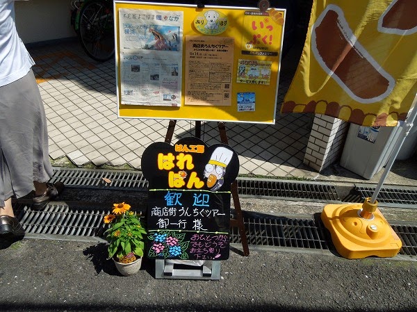 千代崎川にフタをした道を、上台集会所から小港町の方へ北方町の旧道に合流する旧西泉橋近くまで行くと、オレンジ色の大きな「はれぱん」と書かれた旗が見えてきます。