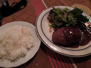 この日のランチ。柔らかいハンバーグに濃厚なソースがかかっていて、美味しいです。