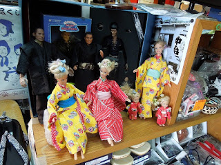 作務衣や地下足袋なども販売しています。これなんか完全に和風ですが、商品棚の上にはアメリカの雰囲気を感じさせるものがありました。