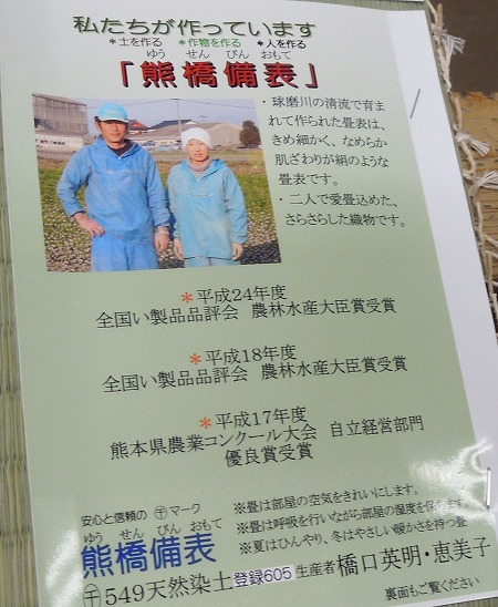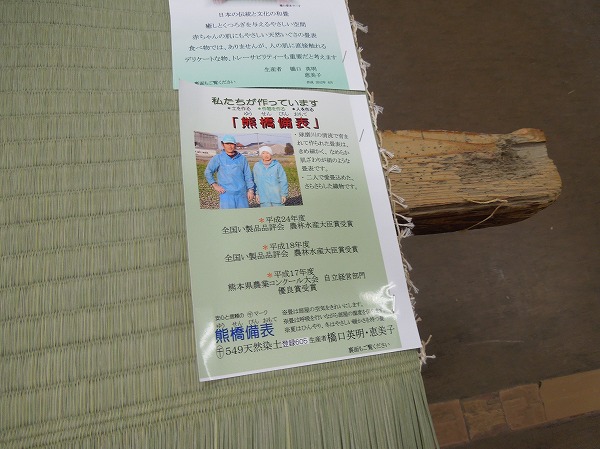 そのため、首相官邸や熊本城にも納め られた「ひのさらさ」をはじめ、最高級品 を仕入れることができます。